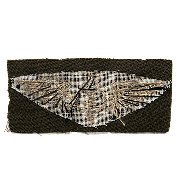 大戦時、米陸軍航空隊における爆撃手(Bombardier)・ウイング。制服用ウール地ベースの Bullion糸使用ハンド刺繍仕様。実物未使用品。
