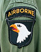 ■パッチ詳細:左上腕部(肩口)/第101空挺師団パッチ(カラー/メロウエッジ)、左胸/US ARMY胸章(刺繍タイプ)、右胸/ネームテープ(刺繍タイプ)