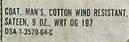 COAT,MAN'S,COTTOT WIND RESISTANT,SATEEN,9 OZ.,WRT OG 107