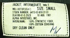 US MA-1 フライトジャケット(グランドクルー)、MIL-J-8279F