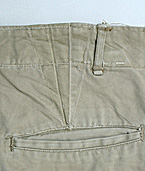 ●ウェスト部の拡張:背面左右ポケット直上部の拡張用縫い合わせを解きウェストサイズの拡張がなされています。/左下画像参照