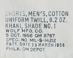 ■制式名称:SHORTS, MEN'S, COTTON UNIFORM TWILL 8.2oz KHAKI SHADE No.1