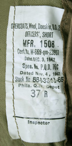 ■制式名称:OVERCOATS, Wool, Doeskin, O.D., 260 OFFICERS', SHORT