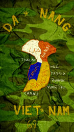 69-70年 ポンチョライナーベトジャン、アメリカサイズXL、ウォッシュ縮みなくグットコンディション。フロントファスナー:C&C CROWN、手刺繍柄/フロント:GUNFIGHTER、バック:DANANG。