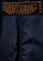 ●背面内側:ラベルより約3cm下部に『U. S. AIR FORCE』のアウトライン(白)のステンシルあり(※経年変化により一部欠落箇所あり)/左上画像下部参照