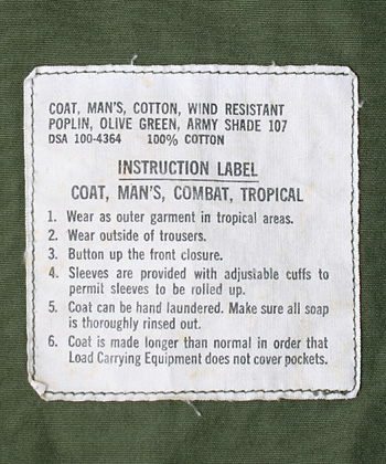 ■制式名称:COAT, MAN'S, COTTON, WIND RESISTANT POPLIN, OLIVE GREEN, ARMY SHADE 107