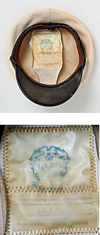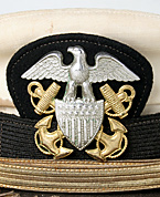 大戦時、米海軍における将校用制帽。バイザー部にモール刺繍の入った佐官クラス用でホワイト・トップ仕様品。