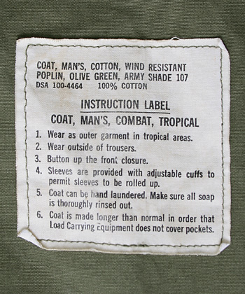 ■制式名称:COAT, MAN'S, COTTON WIND RESISTANT POPLIN OLIVE GREEN, ARMY SHADE 107