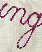 ●下段:『Greetings from England』の文字/紫色糸チェイン・ステッチ仕上げ(左画像参照)