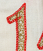 ■刺繍部の仕様:文字、ラインをチェイン・ステッチで仕上げた手刺繍品、一部にブリオン糸(金属糸)を使用。
