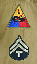 WWII US ARMY 第一機甲師団(OLD IRONSIDES)・5級技術下士官カーキシャツ。