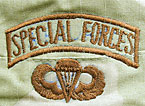 空挺(パラシュート)章と”SPECIAL FORCE"のアーチがデザートカラーで刺繍されている。
