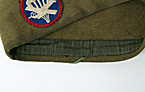 大戦時米陸軍において採用、支給されていたウール素材で、端部に兵科色のパイピング付きのギャリソン・キャップ。兵/下士官用で正面左サイドに空挺/グライダー章付。実物USED品