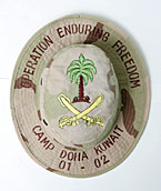 ・ツバ後部:上:"CAMP DOHA KUWAIT"、下:"01 - 02"