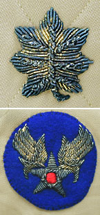 US WWII 陸軍航空隊少佐のテイラーメイド製夏用カーキ制服。徽章類を本体(服)へ直に刺繍されたタイプ。