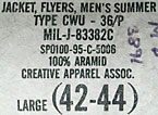 US CWU-36/P フライトジャケット、後期型・MIL-J-83382C/実物・極上