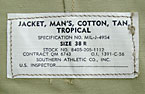 ■制式名称:JACKET, MAN'S, COTTON, TAN, TROPICAL