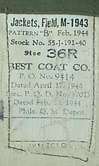■SPEC.ラベル詳細: Jacket, Field, M-1943