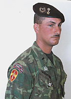 NAM戦時、南ベトナム軍レンジャー部隊における米軍アドバイザー(軍事顧問団)用のスクロールと呼ばれる肩用パッチ。ベトナム製で、当時の実物リーフカモ生地をベースに手刺繍により仕上げられた復刻品。