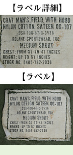■制式名称:COAT, MAN'S, FIELD, WITH HOOD NYLON COTTON SATEEN OG-107