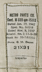 大戦中米陸軍で野戦用パンツとして使用された通称「マスタードパンツ」と呼ばれるウール製パンツ。