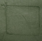 ・左胸部:ポケット底部の襠(マチ)部と近辺に油ジミと推定される小汚れあり。/右下画像参照
