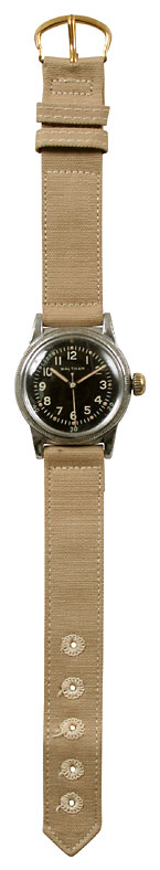 大戦時、米陸軍航空隊(AAF) において採用・支給された航空腕時計の中でも代表的ともいえる型式、TYPE A-11, Navigation Hack Watchの主力製造メーカであるWALTHAM(ウォルサム社)が軍納入品と同型式で大戦時に販売した物をパイロットが個人的に購入した物と思われ、通常裏蓋に刻印されるマーキング無し。