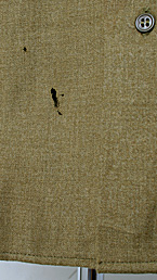右前身の裾より約10〜15cm上に直径2mmと長さ2cm程度の虫穴あり。/左下画像参照