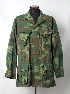 米軍ベトナム戦時において採用、支給された熱帯地用迷彩(ERDL)野戦ジャケット。初期グリーンリーフタイプ。実物極上放出品。