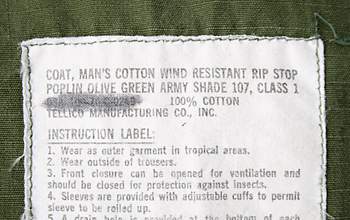 ■制式名称:COAT, MAN'S COTTON WIND RESISTANT RIP STOP POPLIN GREEN ARMY SHADE 107, CLASS 1
