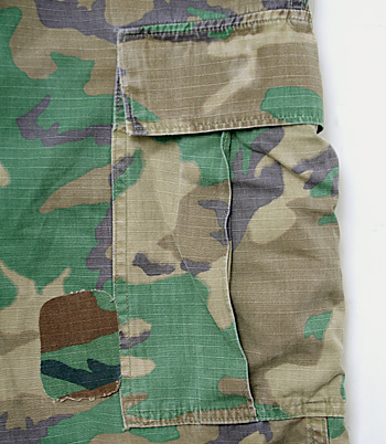 ●リペア箇所:左カーゴポケット付近にウッドランド生地での貼り付けリペア箇所(約5 x 6 cm/W x H)あり/該当画像参照