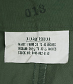 ベトナム戦時、米軍において開発採用された熱帯地用野戦パンツ。通称『ジャングルファティーグ パンツ』。期ノンリップ(N/R) 生地タイプ。実物極上品