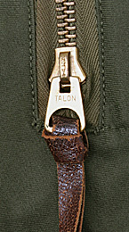 ■脛部ポケットジッパー:TALON社製ブラス・ZIP/右下画像参照