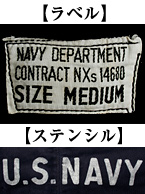 ●正面中央部:『U.S. NAVY』のステンシルあり/左上画像下段参照