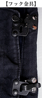 ■サスペンダー:縫い付け固定式(スライド・バックル部を兼ねたフロント金具部により長さ調節。前側のみ着脱可能/右下画像参照)
