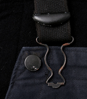 ■サスペンダー:縫い付け固定式(スライド式ストッパー部により長さ調節。前側のみ着脱可能/該当画像参照)