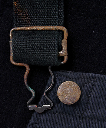■サスペンダー:縫い付け固定式(スライド・バックル部を兼ねたフロント金具部により長さ調節。前側のみ着脱可能)/該当画像参照
