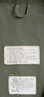 米軍において1950年採用されたM-50 フィールド・ジャケット”“M-43 フィールド・ジャケット”と“M-51 フィールド・ジャケット”の過渡期として採用された50年代初頭の米軍フィールド・ジャケット。M-51との差違はフロントがジッパーでは無い点、裾紐の無い点などが挙げられる。非常に短い期間でしか採用、生産されなかった為、レアな一品。