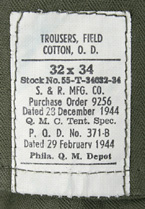 ■制式名称:TROUSERS, FIELD, COTTON, O. D.