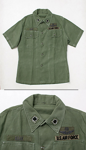 NAM戦時、米空軍における OG107 コットン・サテン シャツ、60年代初頭製造の1st Model。米空軍中佐フルパッチ品。実物極上放出品。