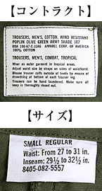 ■制式名称:TROUSERS, MEN'S, COTTON, WIND RESISTANT POPLIN OLIVE GREEN ARMY SHADE107