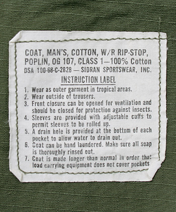 ■制式名称:COAT, MAN'S, COTTON, W/R, RIP-STOP, POPLIN, OG 107, CLASS 1
