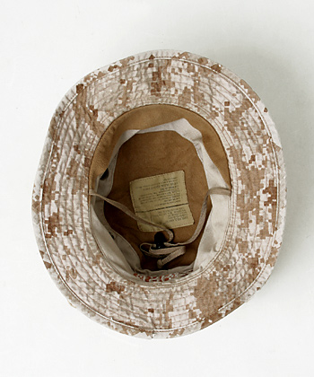 2002年より支給が開始された米海兵隊現用・最新カモ MARPAT(ピクセル・カモ)の野戦ハット。デザートタイプ。背面部刺繍入。実物極上放出品。