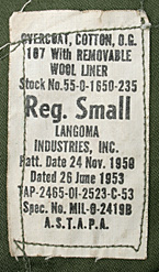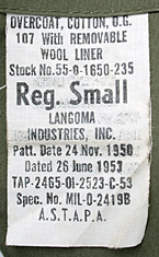 ■制式名称:OVERCOAT, COTTON, O. G. 107 With REMOVABLE WOOL LINER