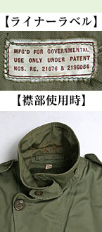 ・スペック・タグ:右内側(ポケットスレーキ部)にあり。/左上画像参照(※ライナー側にも同内容のスペック・タグあり/右上画像参照)
