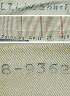 ・ウエスト部:内側、腰裏地最下端部に『Patented Aplil 27, 1926』のスタンピング3箇所にあり/右下画像中段参照