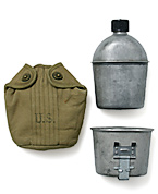 大戦時米軍において採用、支給されていた金属製のキャンティーン(水筒)とカップにコットン製カバー(カーキ色)のセット。実物USED品。