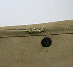 ●背面ポケット部最上部の止めボタン左付近に約3cm程度の破損箇所あり。(但し、補修は可能と推定されます。)/左下画像参照