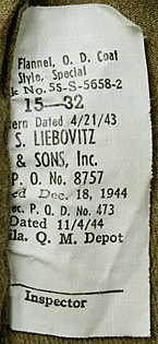 ■制式名称:Shirts, Flannel, O.D., Coat Style Special