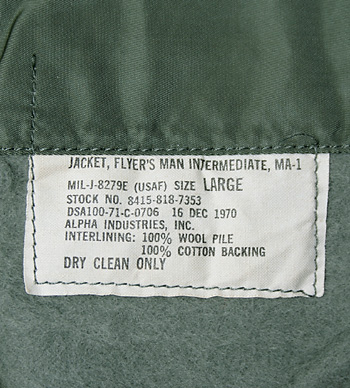 ■制式名称:JACKET, FLYER'S MAN INTERMEDIATE, MA-1